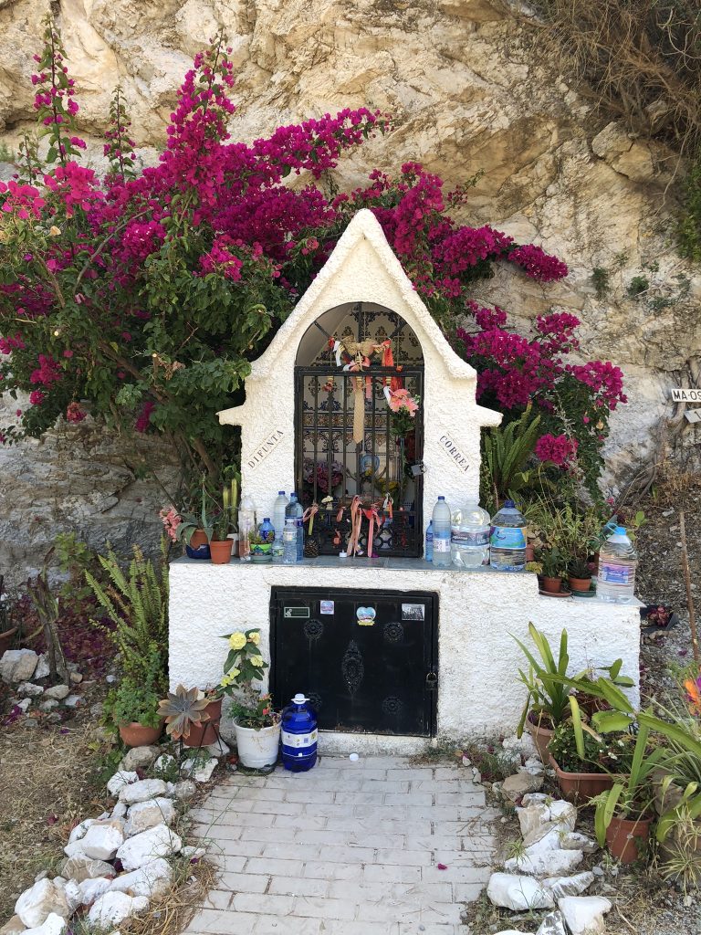 “Pero, Nieves, ¿qué tiene que ver esta historia contigo? Si no crees en este tipo de cosas…”, te podrías estar preguntando. Pues tiene que ver, porque me topé por casualidad con esta historia por internet y cuando fui a buscar más datos sobre la historia descubrí que en 2008, época en la que vivían miles de sanjuaninos en mi pueblo (San Juan y Nerja son pueblos hermanos), construyeron a las afueras un pequeño santuario, el mismo que has visto en las fotos.